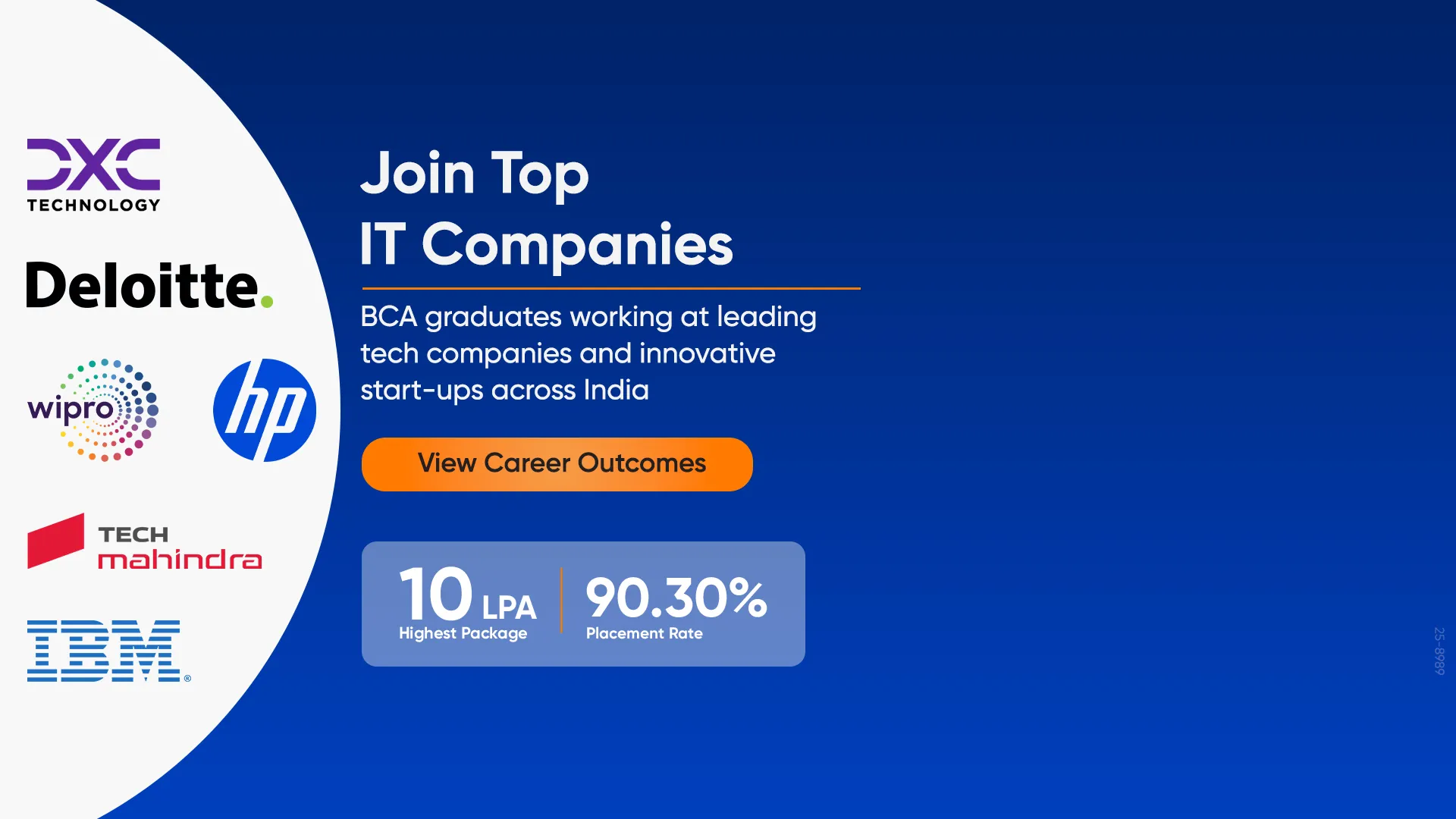 The Bachelor of Computer Applications (BCA) programme delivers industry-relevant skills through practical projects, modern computer labs and expert faculty guidance. With a 90.30 percent placement rate and graduates working at top IT companies, JAIN BCA launches successful tech careers.