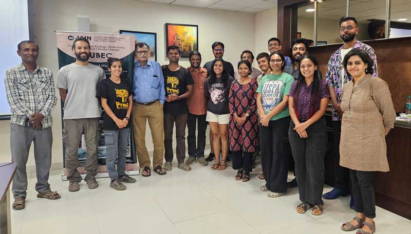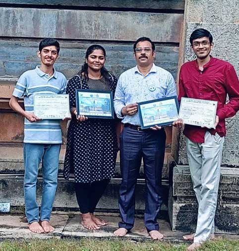 All three of them—Mr. Ganesh Nag, Mr. Gagan Kini, and Ms. Bindu—won the Sahyadri Young Ecologist Award for their outstanding contributions to ecological research. In the same picture, Dr. G. Ramachandra Rao, their PhD supervisor, is also present. His invaluable support played a crucial role in their achievements.