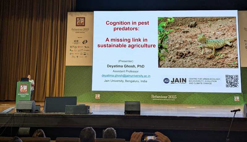 Dr. Deyatima Ghosh presenting "Cognition in pest predators: A missing link in sustainable agriculture" at Behaviour 2025 – the 38th International Ethological Congress (ASAB Summer Meeting), held at the Biswa Bangla Convention Centre, Kolkata, from 25–30 August 2025.