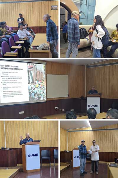 The guest lecture by Dr. Mahesh S. S. on "Climate-Proof Cities: Innovations for Sustainable Urban Planning" was held on November 24, 2025, at Jain University, Bengaluru. Dr. Mahesh, founder of Grus Ecosciences Pvt Ltd, shared his expertise on sustainable urban planning, focusing on climate resilience, policy, governance, and community participation. The event inspired attendees to explore innovative solutions for designing climate-resilient cities and neighborhoods.