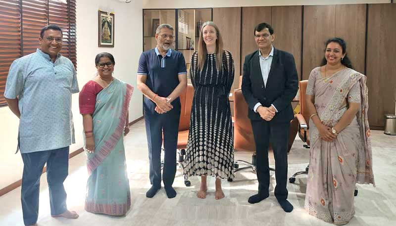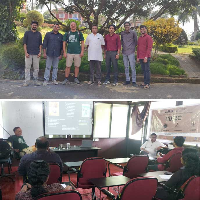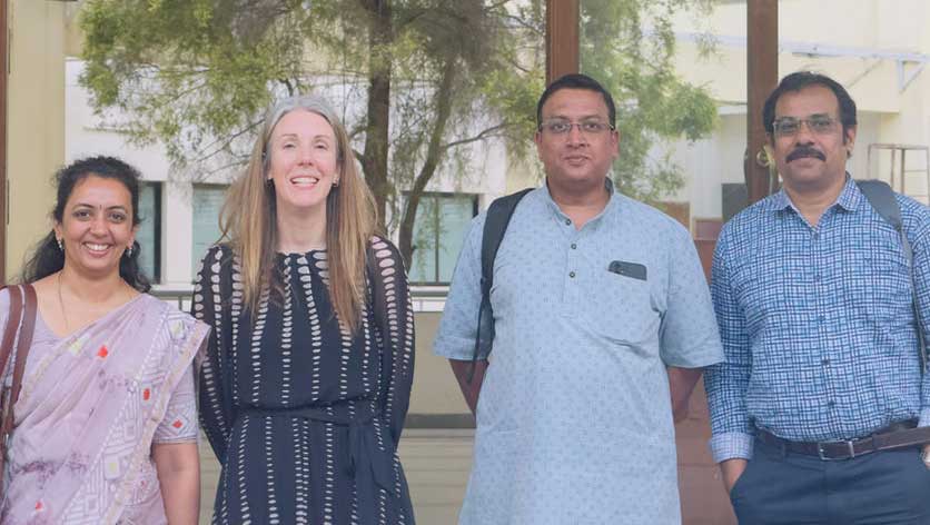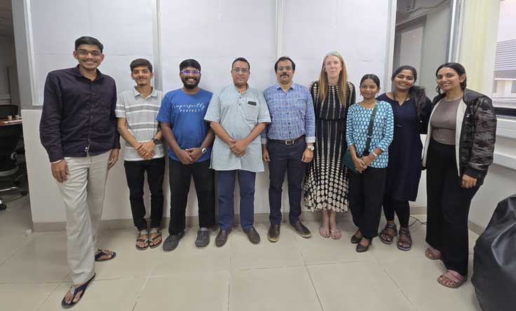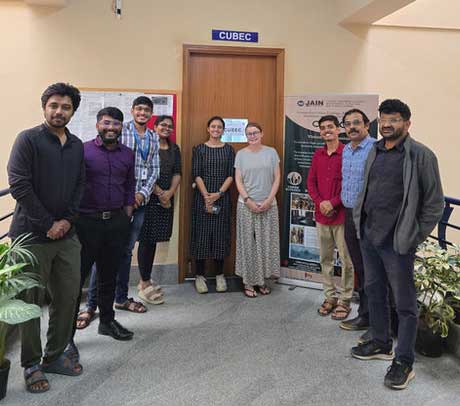 Dr. Kirsty Shaw with CUBEC PhD scholars, accompanied by Dr. Chetan Nag K S (Deputy Director and Associate Professor, CUBEC) and Dr. G. Ramachandra Rao (Associate Professor, CUBEC).