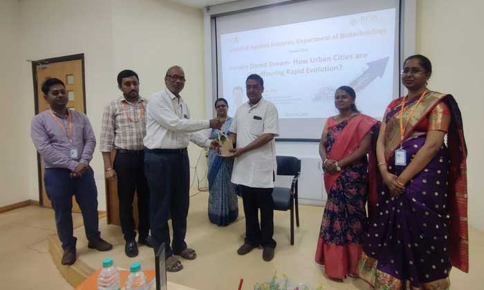 On March 6, 2025, Dr. Chetan Nag K S. delivered an insightful talk titled "Darwin Dared to Dream – How Urban Cities Are Chauffeuring Rapid Evolution?" at an event organized by the School of Applied Sciences, Department of Biotechnology, and the Genex Club Reva University.