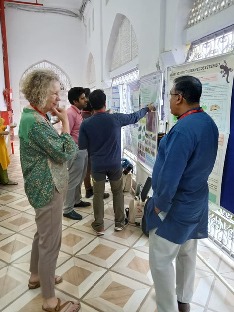 Dr. Chetan presenting "Morphometric Trait Variations of Hemidactylus parvimaculatus Gecko Individuals Along an Urban-Rural Gradient in Bengaluru, India" poster to Professor Trine Bilde from the Department of Biology, Centre for Ecological Genetics at Aarhus University, Denmark- ISEB conference, University of Lucknow, 17th October, 2024