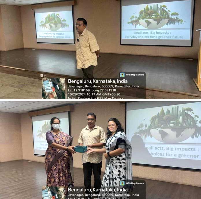 In a vibrant session at the School of CS & IT, Jain (Deemed-To-Be University), Dr. Chetan shared his insights as a distinguished speaker for the event themed "Small Acts, Big Impact: Everyday Choices for a Greener Future." Held on October 29, 2024, from 10:00 A.M. to 11:30 A.M., his talk inspired attendees to embrace sustainable actions and raise environmental awareness, showcasing the importance of urban ecology, biodiversity, and wildlife conservation.