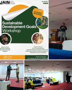 The Sustainable Development Goals Workshop at JAIN University, held on 12th August 2025, focused on conservation and biodiversity. Dr. Ramachandra Rao G discussed the importance of forest conservation and traditional ecological practices, while Mr. Suhas Premkumar showcased his documentary Little Planet: A Tale of Frog, highlighting frogs as key bioindicators. The event inspired attendees to view nature as a living system and encouraged adopting sustainable practices for a healthier planet.