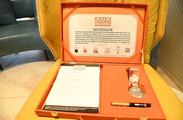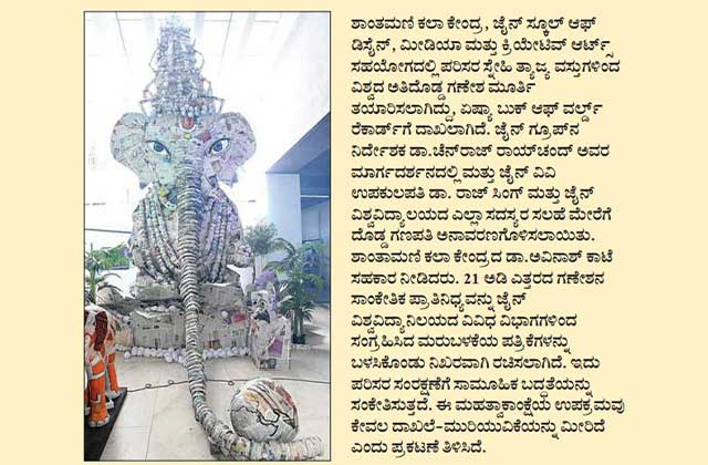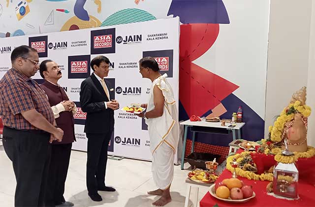 Shantamani Kala Kendra, in a remarkable partnership with the JAIN (Deemed-to-be-University) School of Design, Media, and Creative Arts, has left an indelible mark in history by revealing the planet's largest eco-conscious Ganesh idol. This extraordinary accomplishment has received prestigious recognition from the Asia Book of World Records.