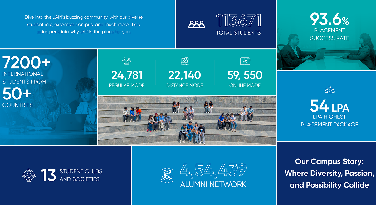 At JAIN (Deemed-to-be University), student life is your chance to soak up every momentβthink warm friendships, global perspectives, and leadership skills that set you apart. With a dynamic community of students, you will dive into a melting pot of cultures, swapping stories and traditions that broaden your academic experiences.